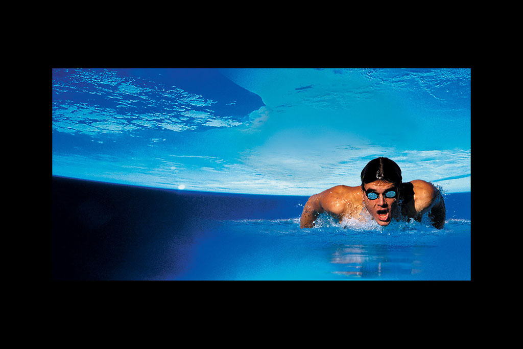Part 2 of image comp - added swimmer, blue goggles and reflection. Removed highlight