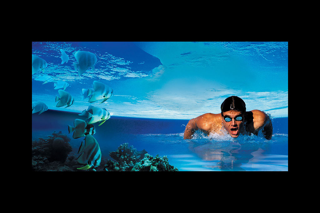 Part 2 of image comp - added swimmer, blue goggles and reflection. Removed highlight